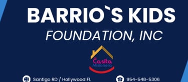 Bienvenidos s Barrio`s Kids Foundation Nuestra misión es proveer los medios para una mejor educación moral y espiritual a los niños de nuestro país República Dominicana.